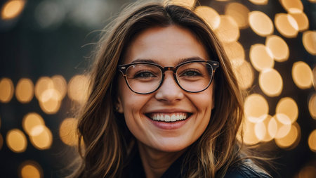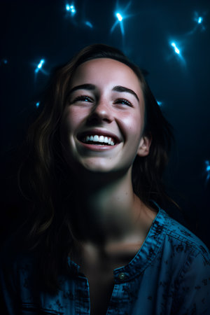 Portrait of a happy young woman with glowing lights on her face