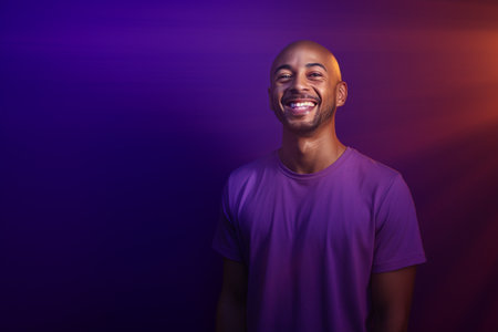 illustration of a happy man dressed in purple t shirt is smiling against a background