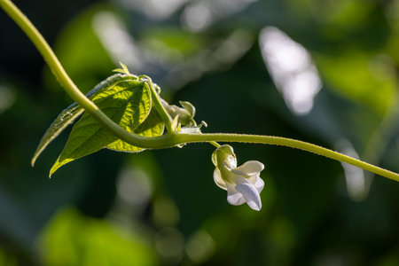 Bean flowering, agriculture, green vegetables. Nutritious and sustainable food