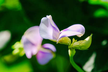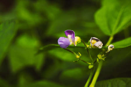 Bloomed purple common bean flower inside of an agricultural farm