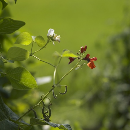 Green bg Pink white and red bean flower the pure vegetable