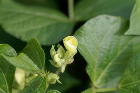 Blooming of the bean in Italy. Natural background with agricultural concept, cultivated bean.