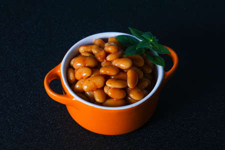 preserved canned tomato beans in a container