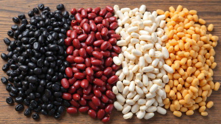 Spotted beans colorful pile. Cook vegan. Generate Ai