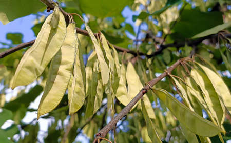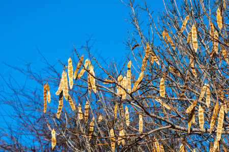 Close up of Robinia pseudoacacia Tree pods. Robinia pseudoacacia is commonly known as black locust. Polish nature concept.