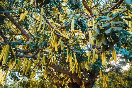 Carob pods on the carob tree ( Ceratonia siliqua )