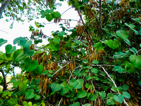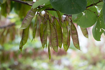 Orchid tree, or Bauhinia variegata pods at summertime