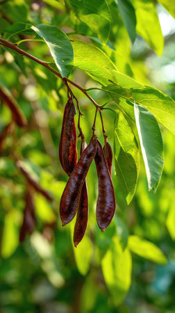 Ripe Carob Pods Ready for Harvest: Close-up Macro Photography