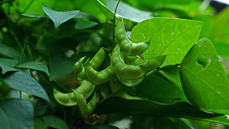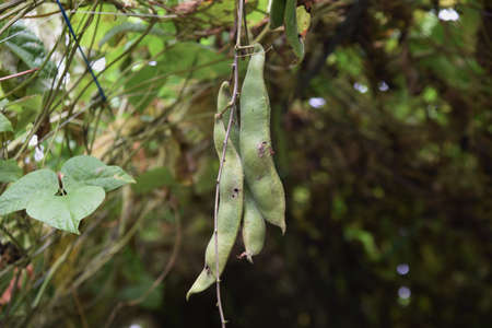 Itchy bean, Fabaceae or Mucuna pruriens or Velvet bean or Leguminosae or Cowitch or Cowhage plant in the garden