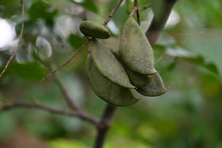 tamarind twig on green bright background