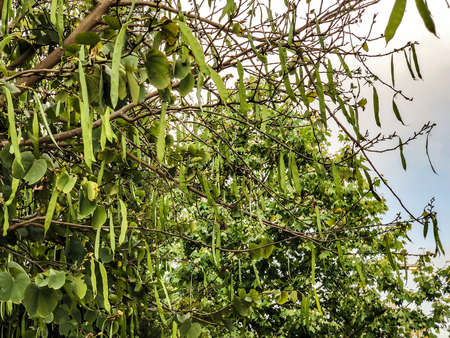 Unripe pods of Carob tree, or Ceratonia siliqua