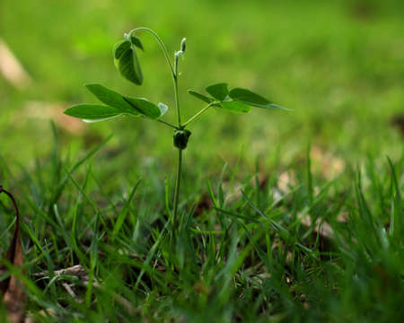 A closeup shot of a small green plant growing in the grass