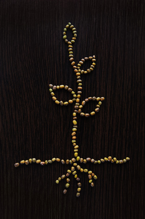 Plant with roots growing out of the ground. Image made from seeds of mung.
