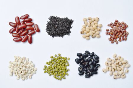 collection set of beans, legumes, peas, lentils on bowl on white background