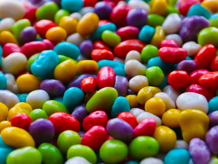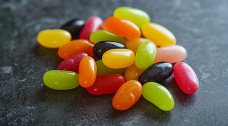 Vibrant jelly beans scattered on a surface