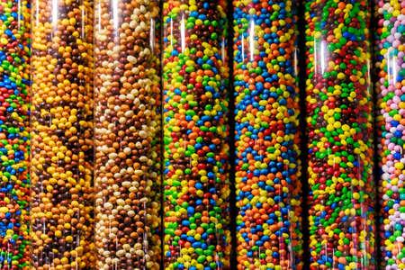 Multicolored sweets for background. candies at market. Colorful sugar balls.