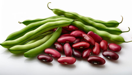 red and green beans on white background