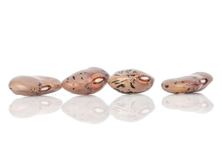 Group of four whole fresh speckled bean pinto isolated on white background