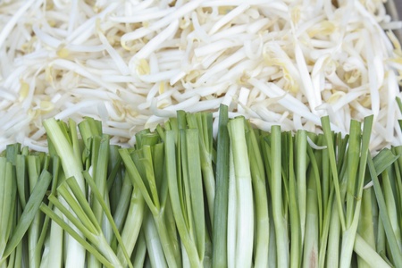 Background of chives and Chinese bean sprouts
