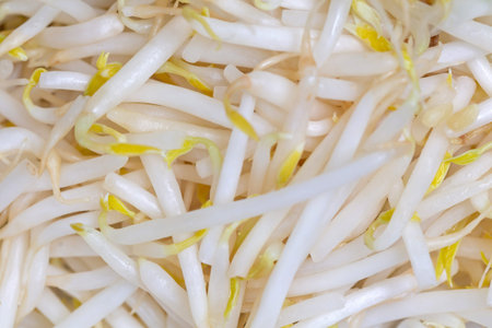 sprouted beans Mash Young green bean sprouts closeup view. Healthy fresh vegetarian food ingredients, vietnamese, pho, bo, soup