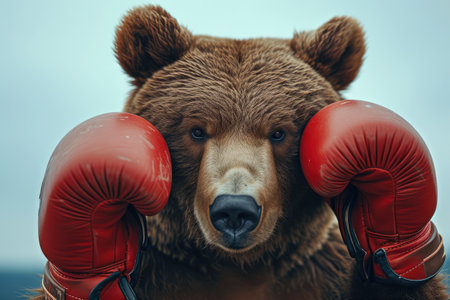 Powerful Bear Athlete in Red Gloves