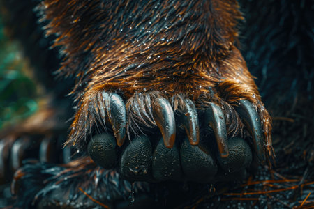 A close-up of a bears fur and claws. AI generated illustration