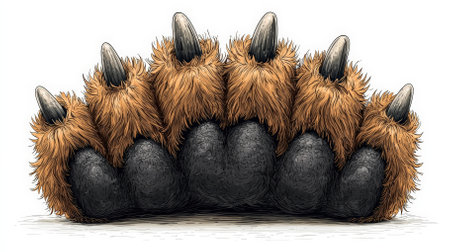 This detailed illustration showcases a bear paw with prominent claws and textured fur, perfect for wildlife-themed projects.