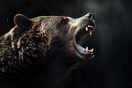 Image of side profile a ferocious brown bear roared gothic. Wildlife. Animals. Illustration. Generative AI.