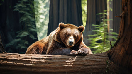 Majestic Brown Bear in Lush Forest Landscape.
