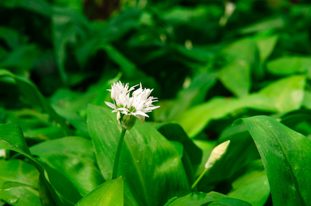 Wild garlic (Allium ursinum) blooming in the forest