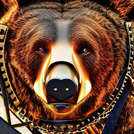 Close-up portrait of a futuristic bear. Abstract grizzly bear. steampunk animal. Illustration in brown tones.