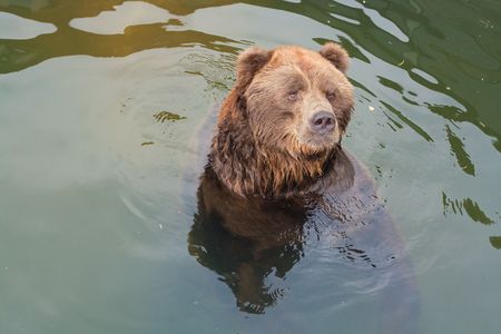 Brown bear in the water at sunset. Alaska. USA. Alaska. Toned.