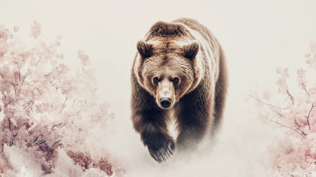 Big brown bear (Ursus arctos) in the environment. Bear in smoke