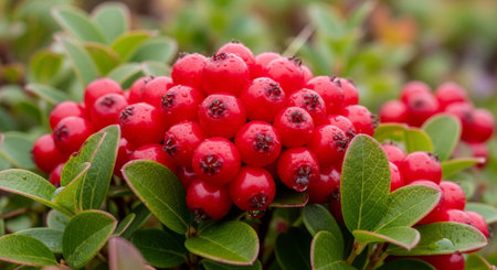 Close-up of cotoneaster horizontalis plant. Background with garden plant in natural colors.