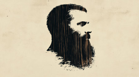Silhouette of serious bearded man in vintage style. Hipster profile portrait. Pensive man in retro clothes.Closeup. Advertising barbershop concept. Isolated.