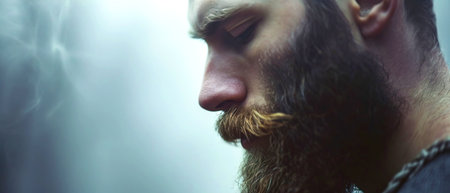 Macro shot capturing the texture and style of a man's well-groomed beard
