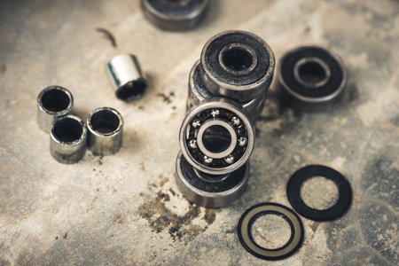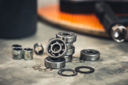 Skateboard and surfskate maintenance concept. Selective focus on the bearing.