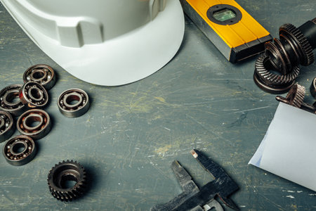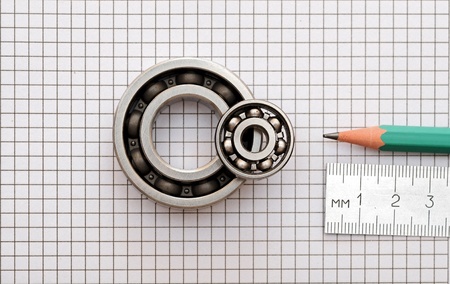 bearings of different types, micrometer, caliper and ruler on the drawings of technical products. technologies and engineering.