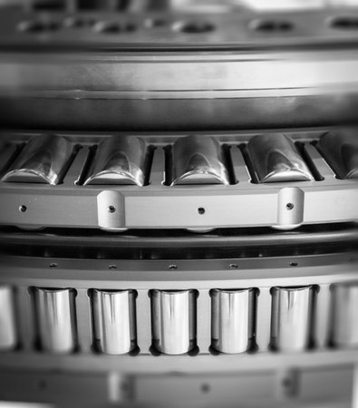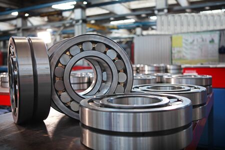 blurred industrial background with a fragment of a roller bearing close-up