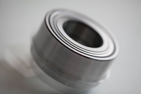 Industrial roller bearing on a light background. Shallow depth of field, selective focus