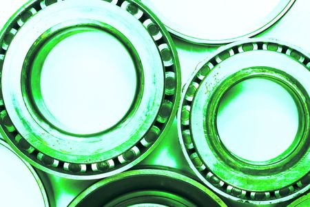 different bearings on a metal background. Part of mechanism.