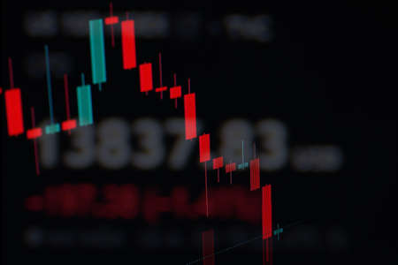 Droping Candle stick graph chart of stock market investment trading. Finance background data graph. Online forex data. Professional market analysis.