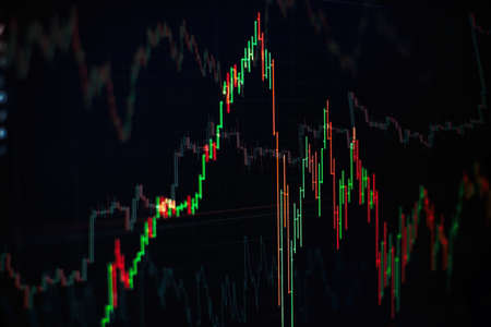 Stockmarket online trading chart candlestick on crypto currency platform. Stock exchange financial market price candles graph data pattern analysis concept. Computer screen closeup background