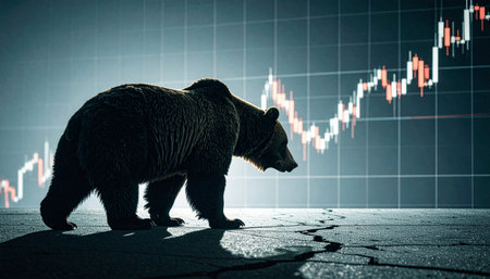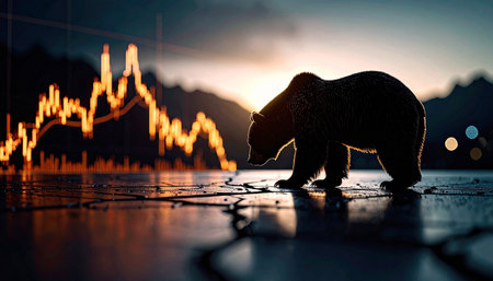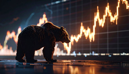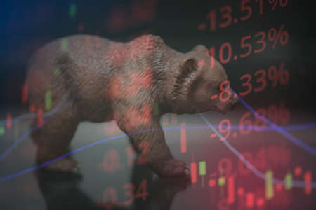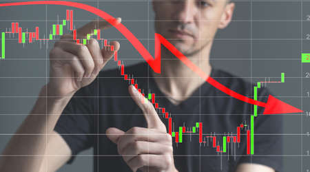 War stock trading bull and bear market concept with stock chart crisis red price drop arrow down chart fall, stock market bear finance risk trend investment business and money losing economic