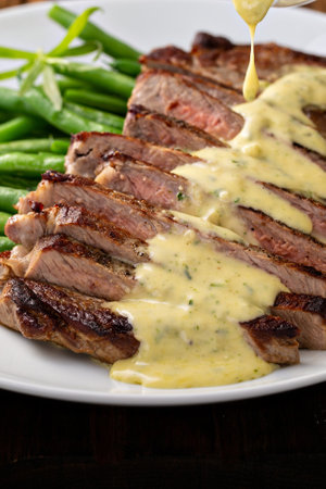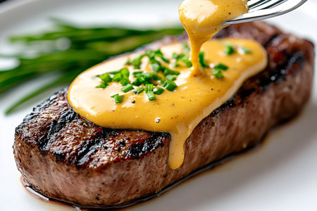 Capture the essence of Bernaise Sauce in a mouthwatering food photography shot
