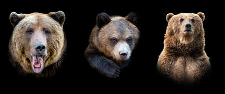 Set of many bear. Wildlife animal isolated on black background