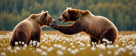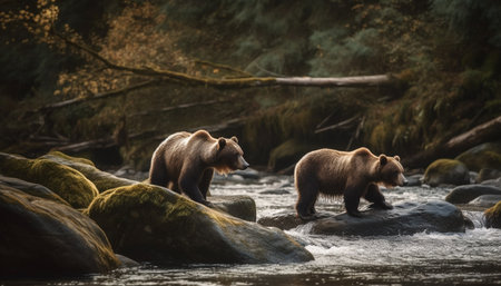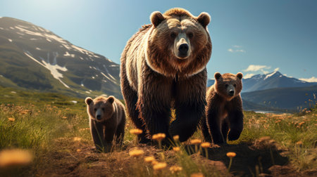 North American grizzly bears, featuring their powerful presence in the wild. Generative AI