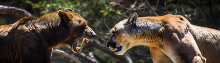 Intense Showdown Between a Powerful Bear and Ferocious Mountain Lion Vying for Control of Their Wilderness Territory