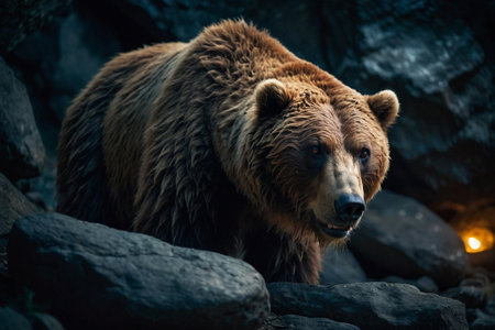 Generative AI art with The Mighty Bear. Beautiful grizzly bear. Generative AI