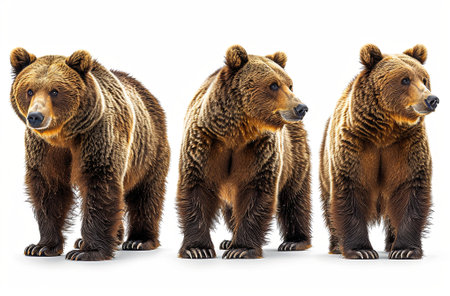 Image of family group of bears on white background. Wildlife Animals. Illustration, Generative AI.